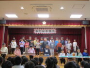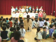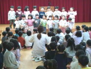 松さんからは 合奏と大型絵本のプレゼント。立派な松さんの発表に「かっこいい」「上手だったと」下級生は憧れの眼差しです。